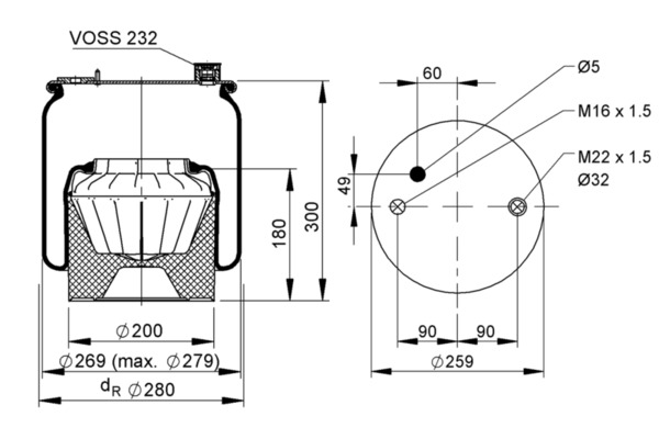 Gewindemaß Druckleitungsanschluss: M16x1,5, M22x1,5 Ø32