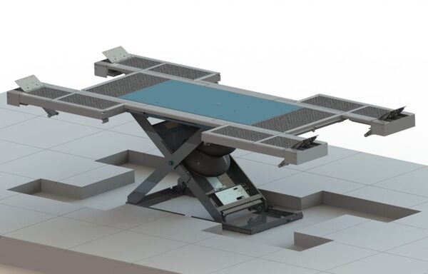 Auf Rädern anheben oder als Radfreiheber; bodenebener Einbau (Beton oder Gitterberostung)