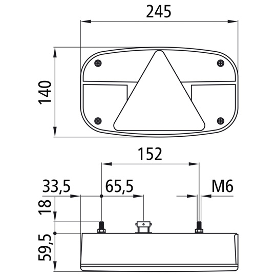 Dreieckrückstrahler, mit Nebelschlusslicht, Rückfahrlicht,