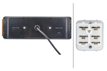 Blink-, Stop-, Rück-, Nebelschluss-, Rückfahr-, Umriss-, Seitenmarkierungsleuchte, Dreiecksrückstrahler, Lichtscheibe mit vertikalen Optikfeldern.