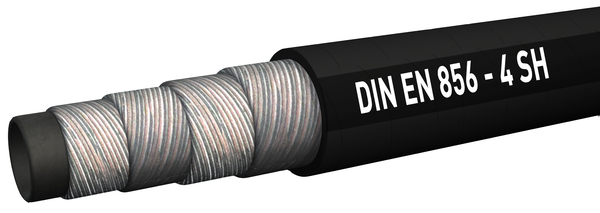 Seele aus ölbeständigem Synthesekautschuk, vier Stahldrahtspirallagen höchster Festigkeit, Decke aus abrieb- und wetterbeständigem Synthesekautschuk