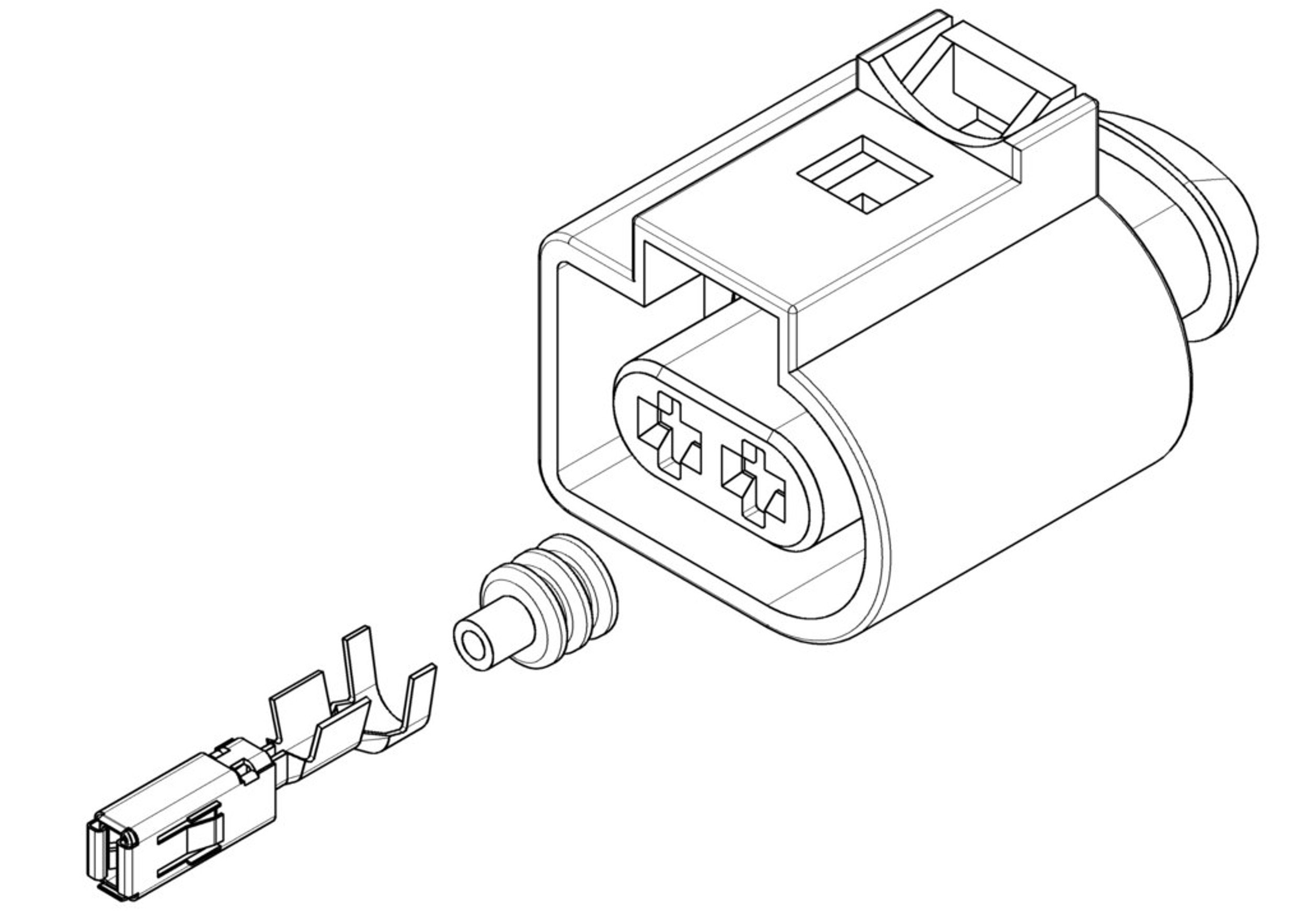 2-poliger Stecker mit Flachfederkontakt und Abdichtung