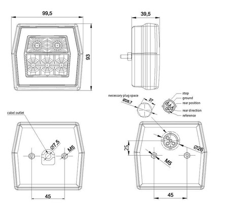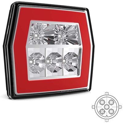 Dieses LED Rücklicht 700-serie von Fristom wurde für Fahrzeuge mit einem Spannungsbereich von 12-24 V entwickelt und wird über einen 5-PIN Bajonettstecker angeschlossen. Ihr quadratisches Design passt in eine Vielzahl von Fahrzeuganwendungen, bei denen eine zuverlässige Signalbeleuchtung gewünscht wird. Dieses Rücklicht kombiniert die Funktionen: Rücklicht, Bremslicht und Blinklicht. Das Gehäuse und die Linse bestehen aus Polycarbonat für hohe Stoßfestigkeit und Umweltverträglichkeit. Dank der IP68-Zertifizierung ist das Rücklicht vollständig staub- und wasserdicht. Das Produkt verfügt über die folgenden Zertifizierungen: CE, ECE-R10, ECE-R7 und ECE-R6. Durch die Aufbaumontage ist es für verschiedene Montageorte geeignet.