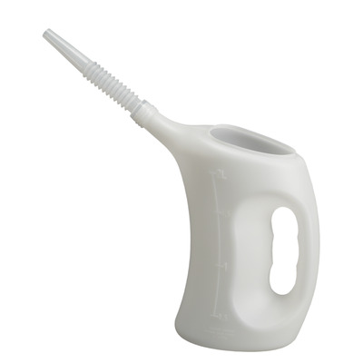Öl-, benzin- und säurebeständig. Ergonomisches Design. Auslauf in Trichterform ausgeführt. Flexauslauf. Bruchsicher und standfest. Deutsche, englische und amerikanische Skaleneinteilung. Farbe Behälter: weiß, transparent.