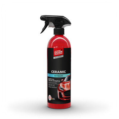 Der NIGRIN Performance Ceramic Detailer ist die ideale Lösung zur schnellen Auffrischung von Lackoberflächen mit oder ohne bestehende Keramikversiegelung. Die innovative Formel mit SiO₂-Technologie sorgt für einen intensiven Tiefenglanz und einen ausgeprägten Wasserabperleffekt – ganz ohne aufwendiges Polieren.