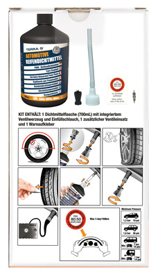 • 700ml Reifendichtmittel, neueste Generation, von internationalen führenden Automobilherstellen nach Spezifikation geprüft und freigegeben, mit verbesserten Dichtfähigkeiten