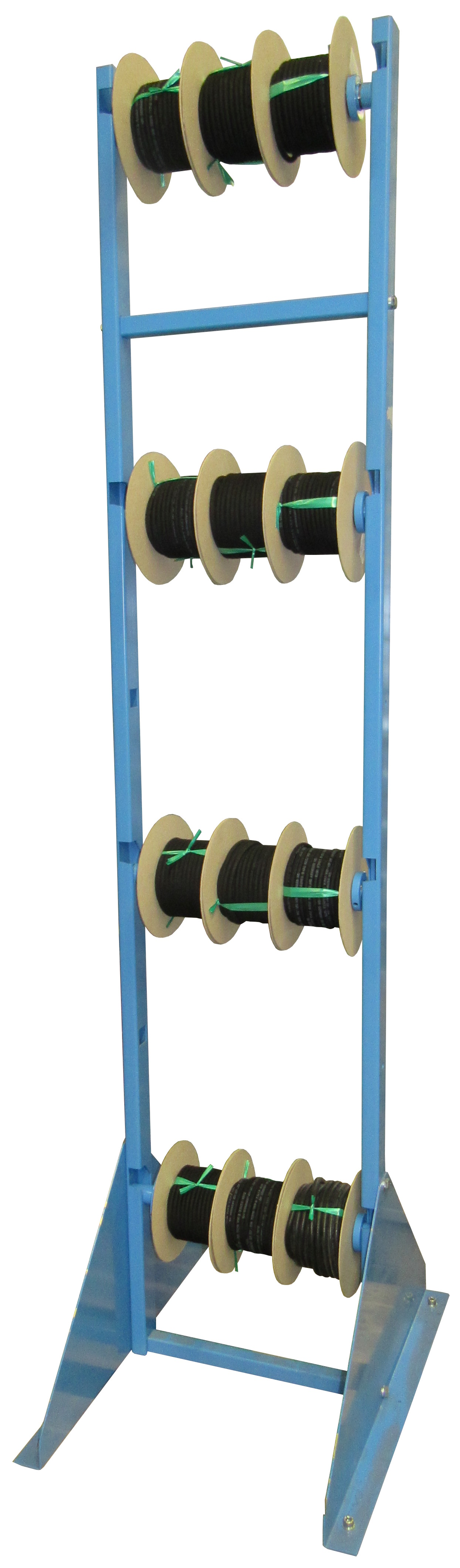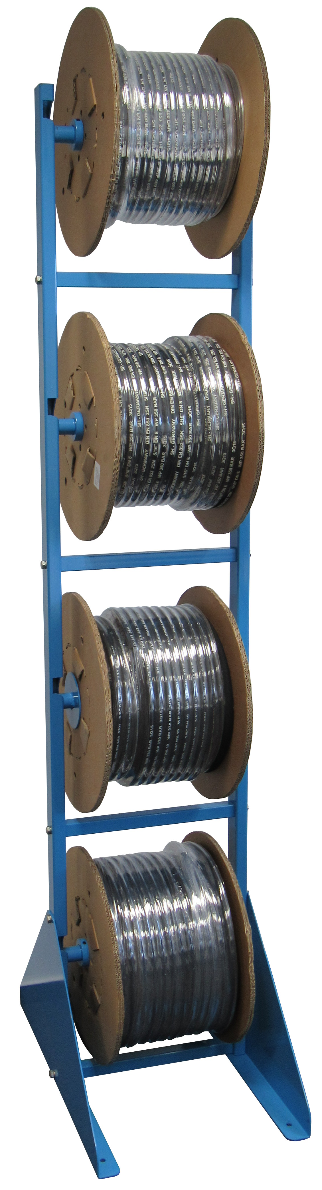 Der Ständer bietet Platz für bis zu vier stabile Papp-Spulen zum Einhängen, die eine einfache und sichere Handhabung gewährleisten.
