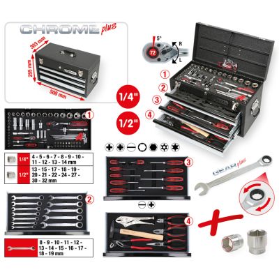 1/4"+1/2" CHROMEplus Universal-Werkzeug-Satz, 99-tlg GEAR
