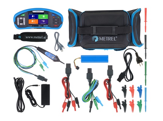 METREL MI3155 IND, 8800 mAh Akku, Netzteiladapter 12V / 3000mA, Prüfkabel mit Schucko-Stecker A1053, Commander-Prüfspitze A1401/1 BLK 1,5m, 4-Leiter Messleitung 1,5m, 3-Leiter Messleitung 1,5m, 2-Leiter Messleitung für ISO 2,5kV 1,5m, 4 Prüfspitzen schwarz, blau, grün, rot, 6 Krokodilklemmen 2x schwarz, 1x blau, 1x grün, 2x rot, USB-Kabel, Weiche Tragetasche, weicher Nackenriemen, Metrel Software ES Manager inkl. Lizenz P1101 PRO Plus, Kurzanleitung, Bedienungsanleitung auf CD, Kalibrierzertifikat