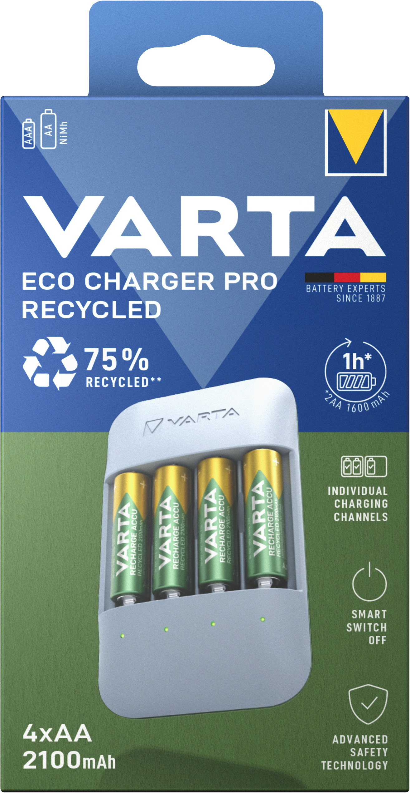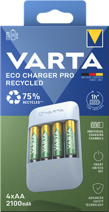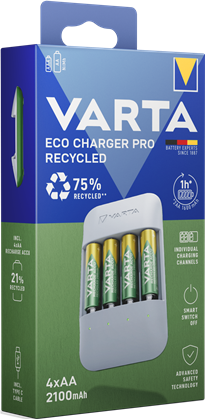 variieren.|Ausgestattet mit 4x Recharge Accu Recycled AA