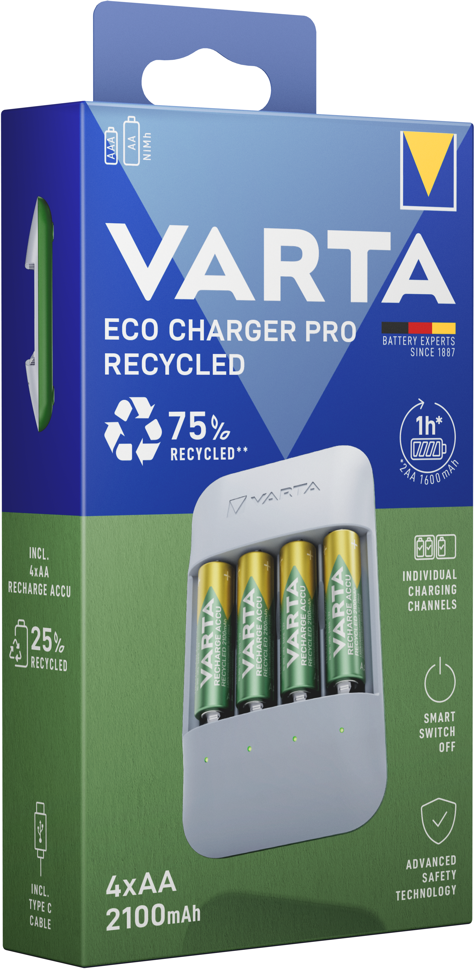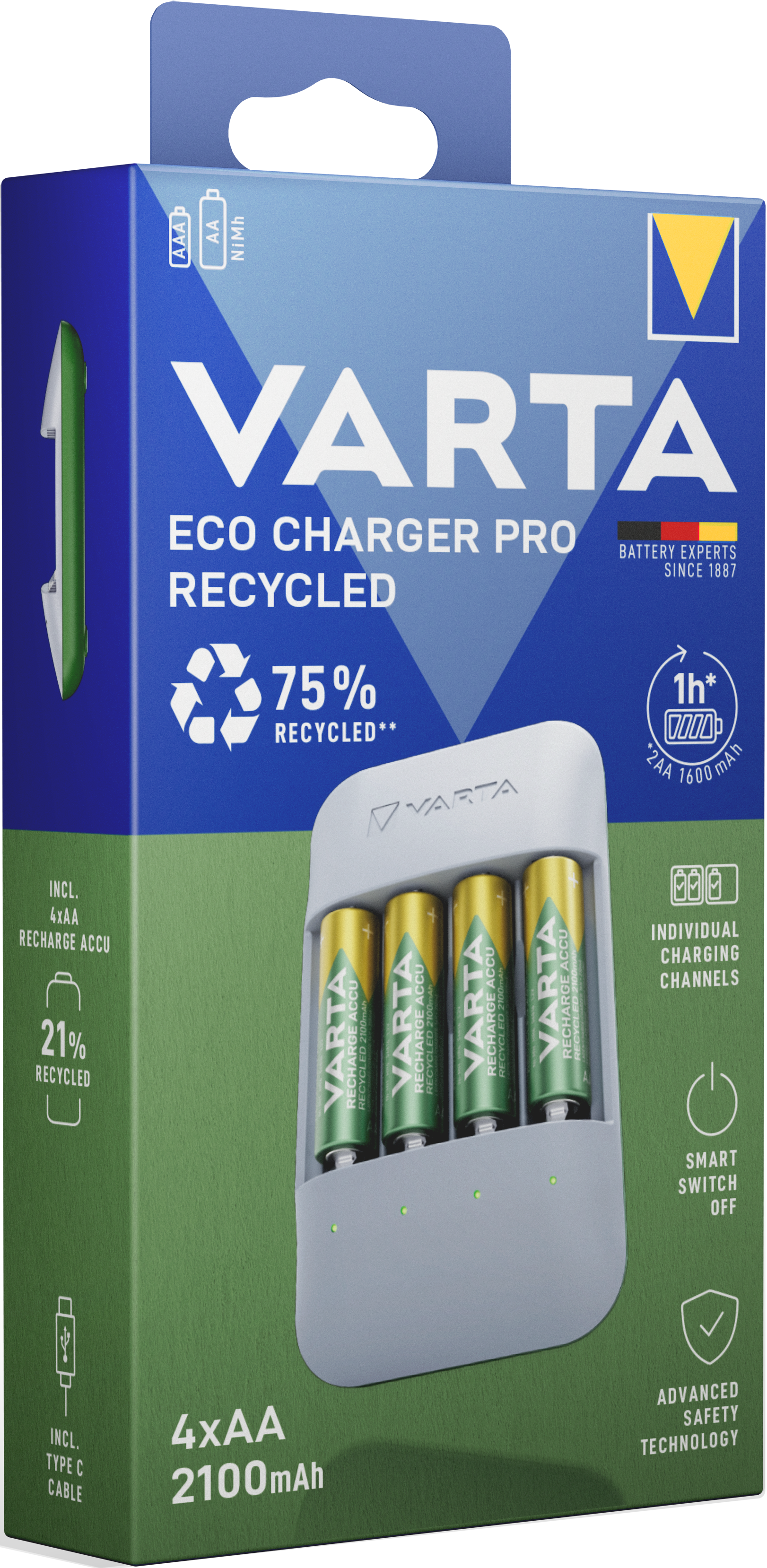 2100 mAh Recharge Accu Recycled aus 21 % recycelten