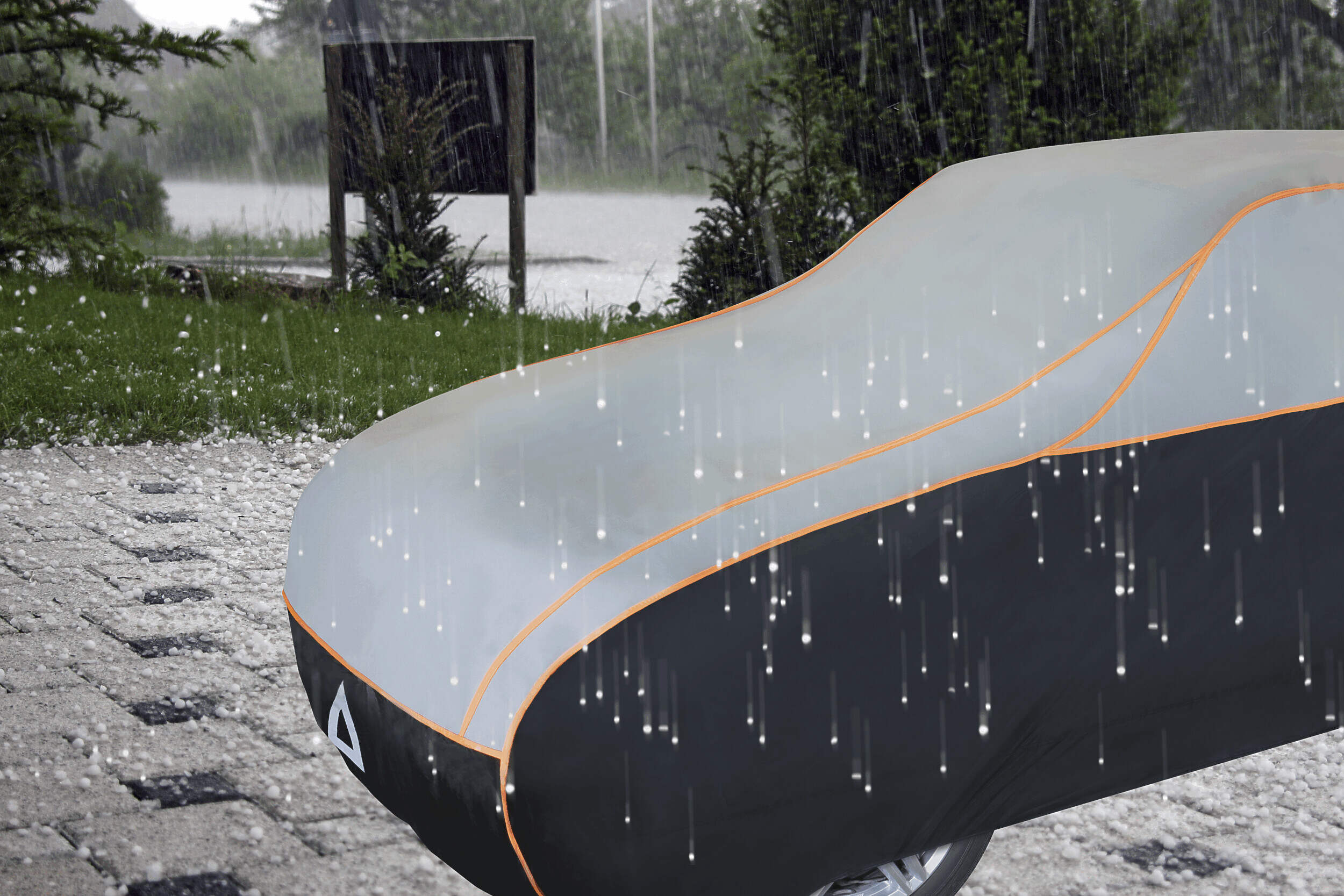 Freien parken und Auto mit der Hagelschutzplane schützen
