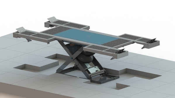 Auf Rädern anheben oder als Radfreiheber; bodenebener Einbau (Beton oder Gitterberostung)