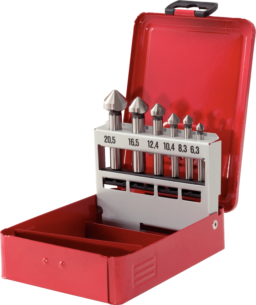 HSS Kegel- und Entgratsenker-Satz, Stahlblechkassette 6-tlg