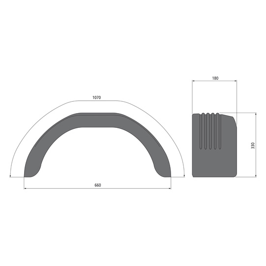 180 × 1070 × 660 × 330 mm (b × l × s × h), mit