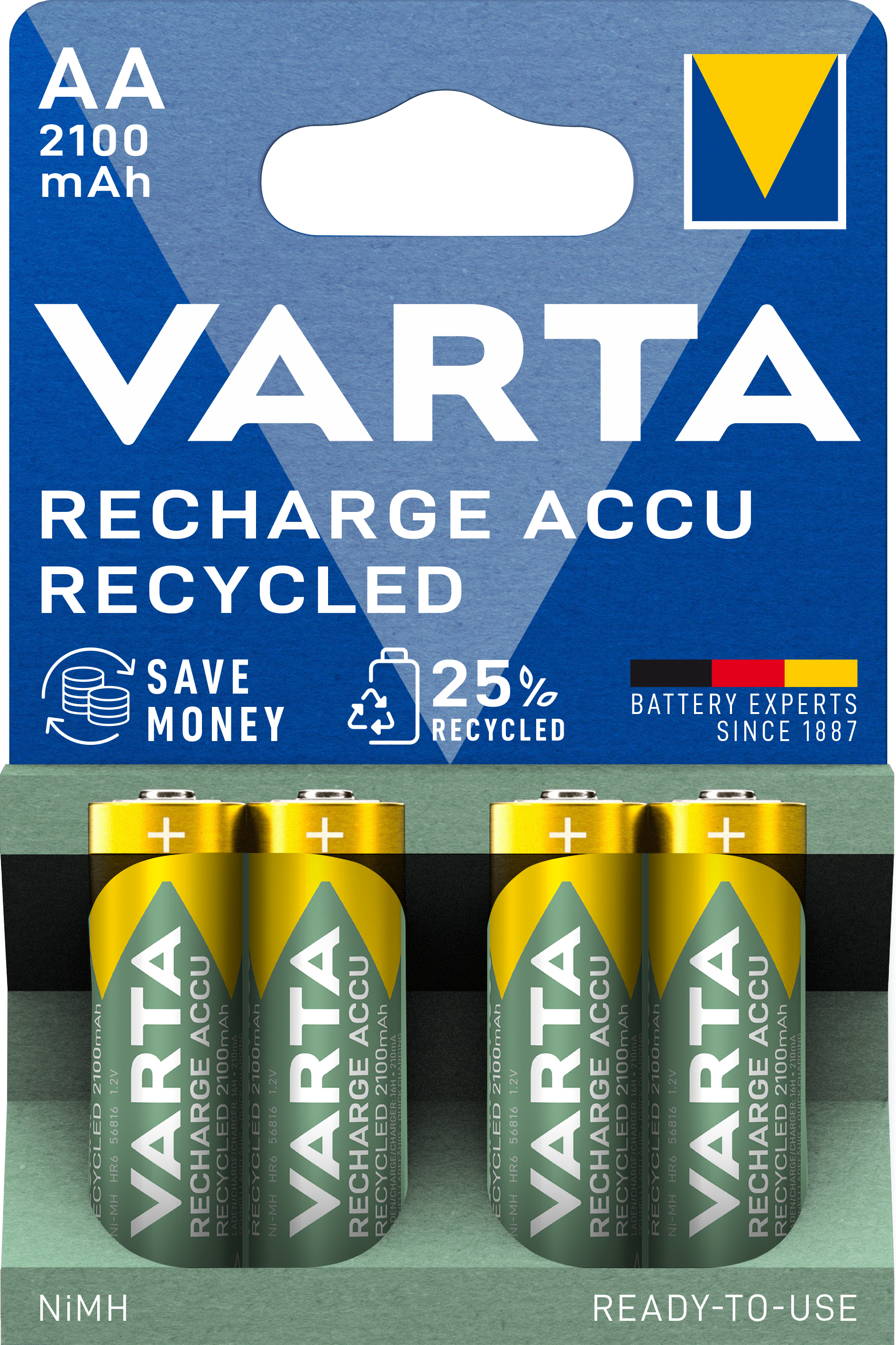 Der VARTA Recharge Accu Recycled AA mit 2100mAh Kapazität
