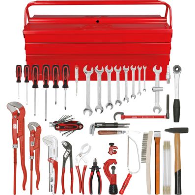 Sanitär-Basic Werkzeug-Satz, in Metallkiste, 34-tlg